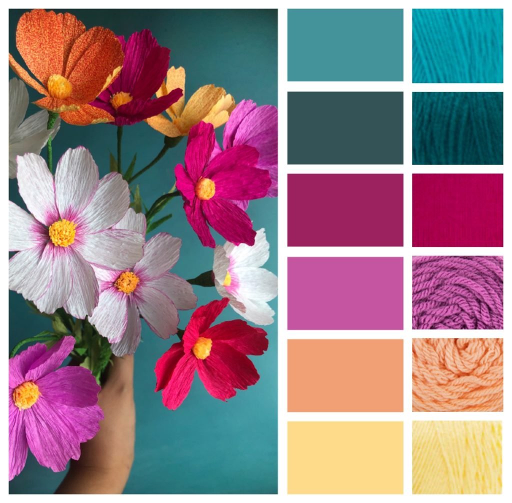 I have always had a difficult time coming up with cute color combos for my crochet projects, but then I found Design Seeds, which has some of the cutest color palettes I’ve ever seen. I thought it would be fun to match Design Seeds’ color palettes with similar yarn colors to inspire crochet, knit, and yarn projects. Click on the picture to see which yarn brands and colors I chose.